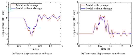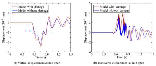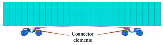 22] studied the dynamic interaction of the train–bridge system comprehensively and systematically by considering the track contact and the elasticity of the track. Then, they established a finite element model of the train–track–bridge dynamic interaction. Their finite element model of the train–track–bridge dynamic interaction for different types of bridges and track structures was established and validated, and the model results were in good agreement. Lv [