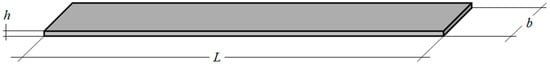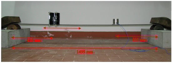 The simply supported beam’s geometrical characteristics are reported in Figure 3. Its density is 7746.90 kg/m3, the steel longitudinal elastic modulus Es-real is 203 GPa, while dimensions are L = 1499.00 mm, b = 118.82 mm, and h = 6.39 mm.