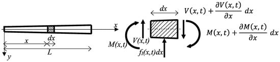 Internal forces acting on an infinitesimal Euler–Bernoulli beam.