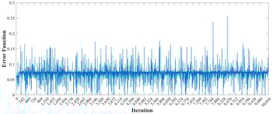 Detail of the trend of the error function showing that the minimum was reached at iteration number 6047.