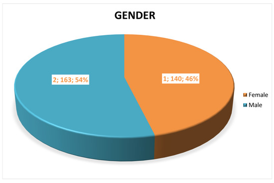 The demographic characteristics of the participants in the study were determined in line with their answers to the questions in the first part of the questionnaire. Figure 1 shows that 46% of the participants were female and 54% were male.