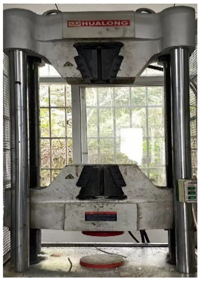 A Hualong universal testing machine was used to test bolted T-stubs under displacement control at 0.05 mm/s (see Figure 5 load capacity +/600 kN, stroke 300 mm), where a machine load cell and displacement transducer were used to measure overall deformation. Figure 6 shows that an axial load was applied to the clamped web.