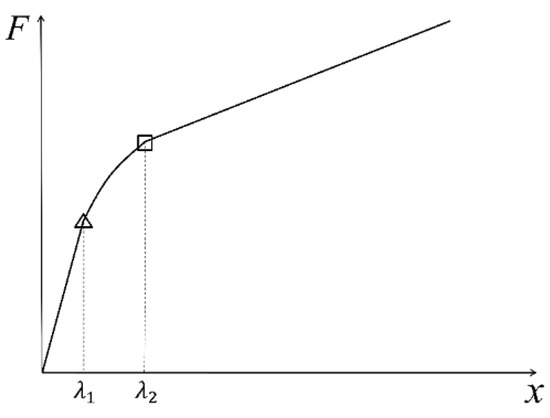 The force–displacement relationship of the model can be expressed as follows [33]: