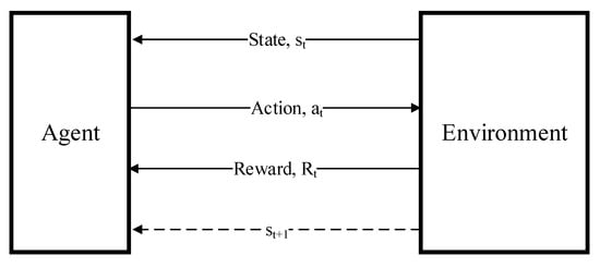 RL is an adaptive machine learning method, which aims to optimize the decision-making based on the evaluation of the environmental feedback signal []. Agent and environment are the two main elements in RL. In an HVAC problem, the environment (controlled system) is all those indoor and outdoor factors that influence a room or zone of the building, and the agent is a decision maker to manage a room or zone actuators of the building, according to specified setpoints [].