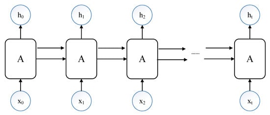 In Figure 5, are the inputs at time ; is an LSTM unit, which is constructed by different components with one memory cell and four gates (input, forget, cell, and output) []. are outputted by , which represent the hidden state of time .