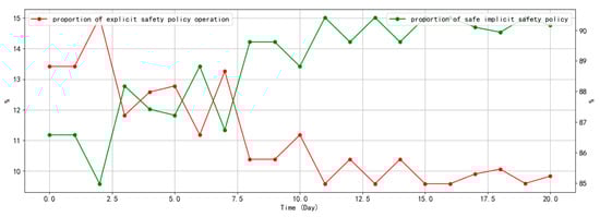 The proportion of explicit safety policy operation and safe implicit safety policy.
