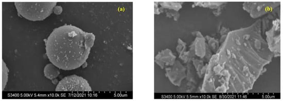 SEM images of slurry A: (a) C7.5F70S22.5; (b) C22.5 F70S7.5.