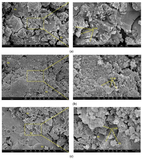 SEM images of the DLGMs prepared with different sodium silicate moduli: (a) C7.5F70S22.5-Z3.3; (b) C7.5F70S22.5-Z2.8; (c) C7.5F70S22.5-Z2.3.
