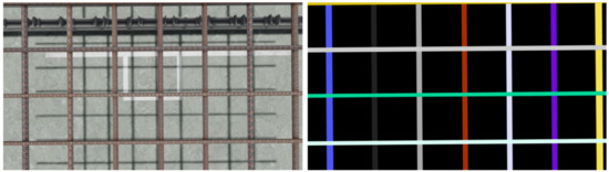 In the instance segmentation label images of the rebar, each instance should be covered by a different color mask, and the background should remain black. Since each rebar has been previously set to a different material in Revit, each rebar will be identified by a solid area of a different color on the material ID map. At this time, if models other than that of the rebar are hidden, the background pixels can be guaranteed to be all black, as shown in Figure 7.