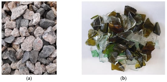 - Serpa, D.; de Brito, J.; Pontes, J. Concrete Made with Recycled Glass Aggregates: Mechanical Performance. ACI Mater. J. 2015, 112, 29–38. [Google Scholar] [CrossRef]