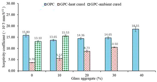 - In general, the sorptivity of the OPC and geopolymer concretes increased due to the increase in the glass coarse aggregate.