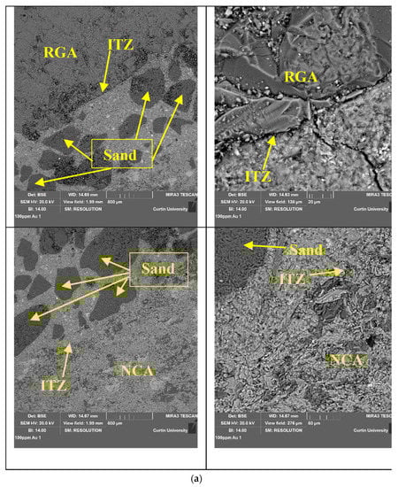 - Hosan, A.; Shaikh, F.U.A.; Sarker, P.; Aslani, F. Nano- and micro-scale characterisation of interfacial transition zone (ITZ) of high volume slag and slag-fly ash blended concretes containing nano SiO2 and nano CaCO3. Constr. Build. Mater. 2020, 269, 121311. [Google Scholar] [CrossRef]