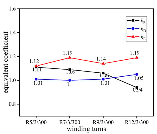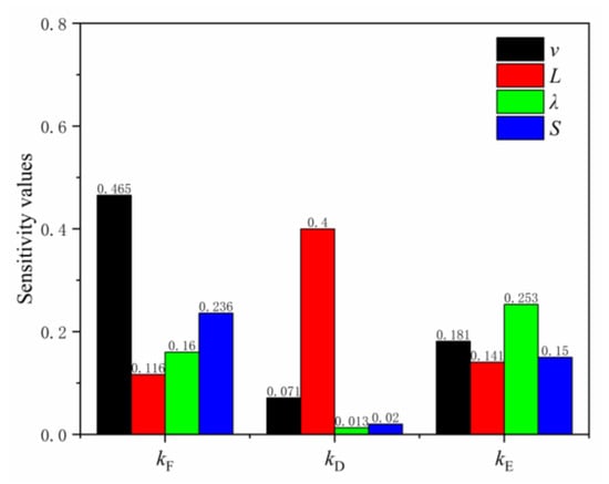 Taking as the benchmark model parameters, the corresponding equivalent factors were kF = 1.082, kD = 1.024, and kE = 1.246. Using Equations (3)–(9), the sensitivity values of each performance parameter were calculated, as displayed in Figure 22.