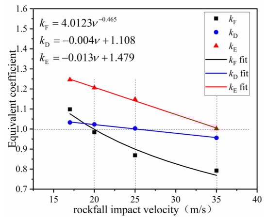 Equivalent coefficients at different rockfall impact velocities.