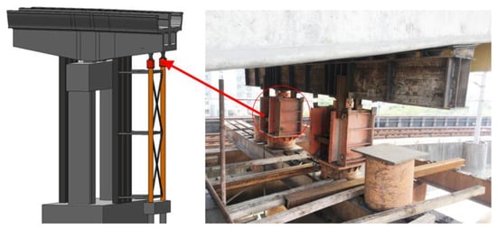 With the continuous assembly of the T-shape structure, the distance between the cantilever tip and the end become longer. The front leg of the bridge erector on the T-shape structure also continues to move away from section 0#, which increases the moment caused by the eccentric load. Consequently, it needs to monitor and control the front leg reaction force of the bridge erector during the hoisting process. Therefore, a pressure ring sensor is set under the front leg of the bridge erection machine. Four pressure ring sensors are set in total as four supporting pads exist in one leg, as shown in