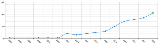 Distribution of journal publications on “BIM” and “architectural heritage” from 2007 to 2022 (186 articles).