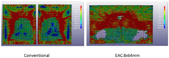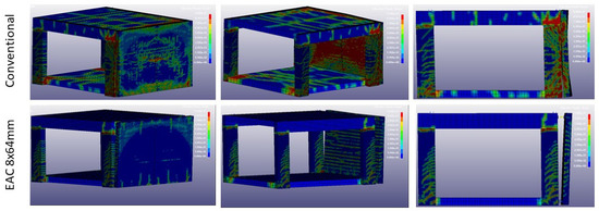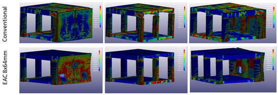The values in Table 4 show that the introduction of EAC causes a remarkable reduction in the maximum deformations in the panel. Comparing with the deflection of the reference panel comprising rigid supports (29 mm), the reductions stand up to 70%.