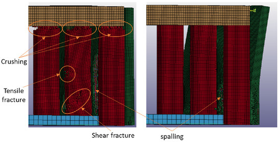 Protection against explosions of military, industrial or governmental critical infrastructures has motivated the scientific community to develop technical solutions using a wide variety of materials and systems. In the case of vertical structural elements, such as columns and shear walls, most of the studied solutions focus on the strengthening of the elements and/or of the associated connections. Several protective solutions have been reported in the literature, especially jacketing, based either on high-performance concrete, including fiber incorporations [1,2,3] or on welded steel plates. Catching systems have also been used, allowing the existing elements to break under extreme loading and the resulting debris to be collected by an internal layer [4,5], or gathered together by elastomers glued to the surface of the walls, providing a significant increase in ductility [6]. The use of planar elements to protect supporting elements, i.e., columns and shear walls, or to perform an integral encapsulation of the structure, has been reported as well as an alternative option. The most common solutions use sacrificial panels coupled to the existing structure through rigid connectors. These sacrificial elements could be simply reinforced concrete panels [4], or, in the case of more sophisticated protective solutions, could include some kind of strengthening, such as ultra-high strength concrete layers or dissipative cores, such as cellular materials, honeycombs and lattice truss structures [7,8,9,10,11].