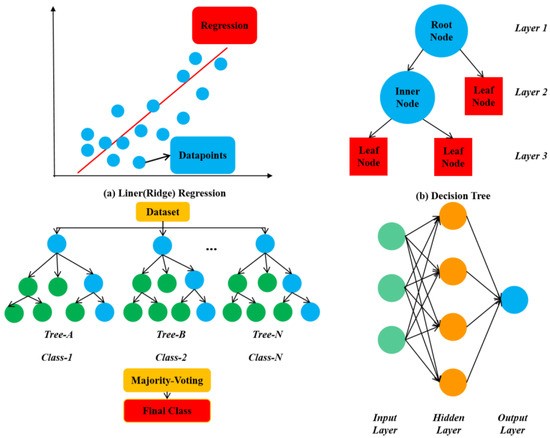 - Dabiri, H.; Farhangi, V.; Moradi, M.J.; Zadehmohamad, M.; Karakouzian, M. Applications of Decision Tree and Random Forest as Tree-Based Machine Learning Techniques for Analyzing the Ultimate Strain of Spliced and Non-Spliced Reinforcement Bars. Appl. Sci. 2022, 12, 4851. [Google Scholar] [CrossRef]