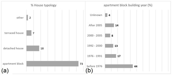 Housing context in percentage of the data sample: (a) house typology and (b) building year of apartments blocks.