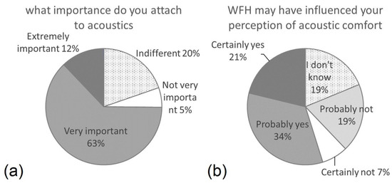 Environment satisfaction: (a) Importance of the acoustic aspects and (b) influence of WFH on the perception of acoustic comfort.