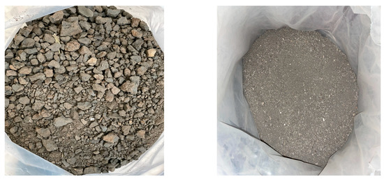 The RCAs (Figure 1) were collected from a building deconstruction in the north of France. They were recycled gravels with initial and final granulometries of 0/20 and 0/5 mm, respectively, after sifting. The fine content of RCAs was determined by: (1) wet sieving on a 63 µm sieve and (2) analysis using laser granulometer Beckman Coulter LS 13 320 analyzer based on EN ISO 13320 standard [34]. The particle size distribution was obtained using various sieves between 63 µm and 8 mm, according to XP 94-041 standard [35].