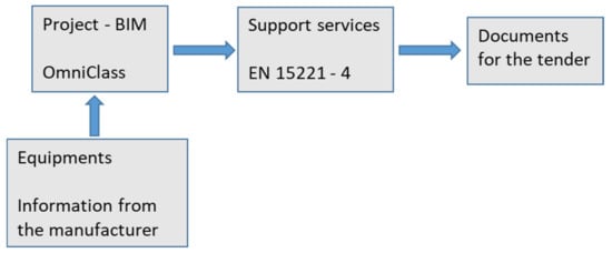 I have not found a scholarly article that addresses the link between BIM and the procurement of support activities within FM, which suggests a gap in addressing this issue. In practice, specific values (e.g., dimensions, number of elements) are exported from the BIM model for tenders, but the data no longer contain information about individual maintenance activities. The main reason is the absence of information in the BIM model, when, in the phase before the completion of the project implementation, the BIM model does not contain the necessary information about operational matters. Data on operational matters appear only after the BIM model is converted to CAFM, where this information is additionally supplemented. The solution is not only to enter operational information in the CAFM system, but into the BIM model during the earlier phase of project preparation. Information regarding the individual steps of preventive maintenance and its cycles should be inserted into the model with the insertion of the relevant technical elements. The source of the information is the manufacturer of the technical element, who supplies it as part of the operational documentation.