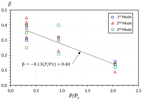 The best-fitted β values from all study cases are plotted against their corresponding P/Ps in Figure 12. Their relationship can be approximated by the best-fitted linear regression formula (dashed line in Figure 12), as follows: