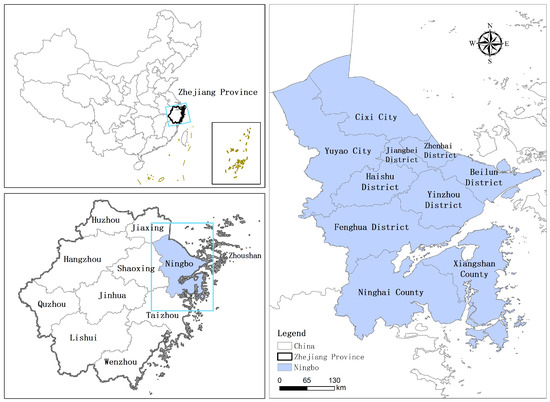This paper takes Ningbo City as the research city, as shown in Figure 1. In 2018, the Ningbo Municipal People’s Government issued the “Implementation Opinions on Promoting the Work of Urban Organic Renovation”. Ningbo’s urban renovation is at the forefront of the country. Its urban renovation focuses on improving urban quality and creating a “coastal metropolis”. Guangdong Province has carried out urban renovation earlier and has certain reference significance, but its urban renovation is more inclined to the market-oriented model dominated by the public. Although this model is applicable in Guangdong Province, it is difficult to promote in the whole country. Government-led and market-involved renovation models might be more suitable in other provinces in China. Ningbo urban renovation mainly takes a government-led and market-involved model, which is more suitable for China’s present situation and easy to spread to the whole country. Ningbo takes the comprehensive improvement of the whole land space as the starting point to promote the renovation of industrial buildings and improve the quality of the city. Therefore, Ningbo is more representative when discussing multiple stakeholders.