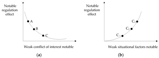 The regulatory mechanism. (a) The relationship between regulation effect and conflict of interest; (b) The relationship between regulation effect and situational factors.