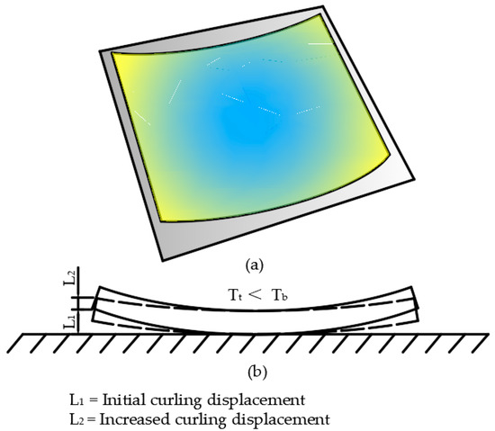 Increased curling deformation of concrete pavement. (a) Spatial diagram and (b) planform.