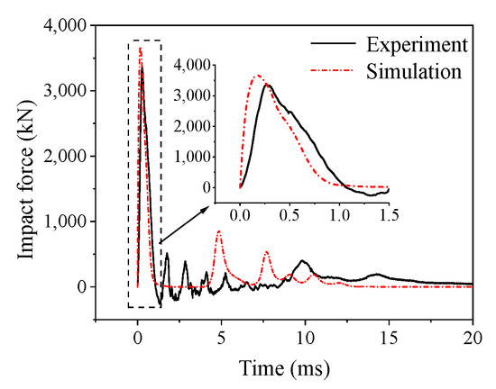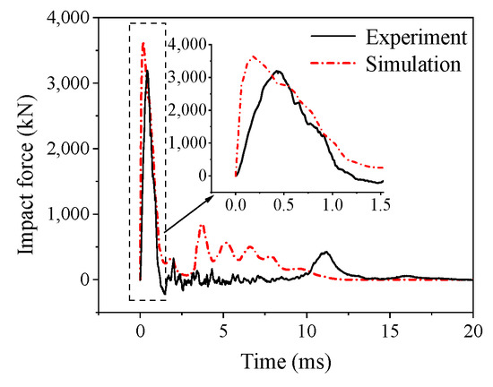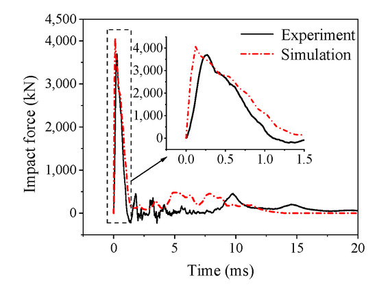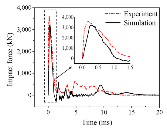 Comparison of the peak impact force values between the working condition design and formula fitting.