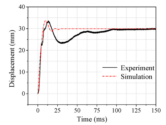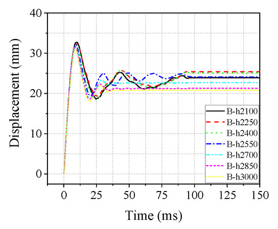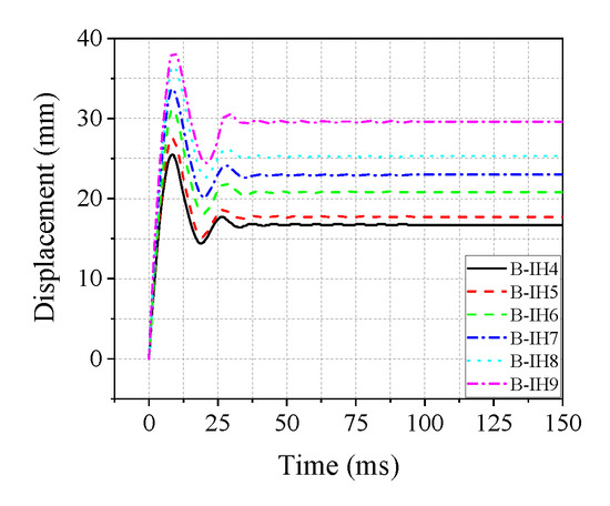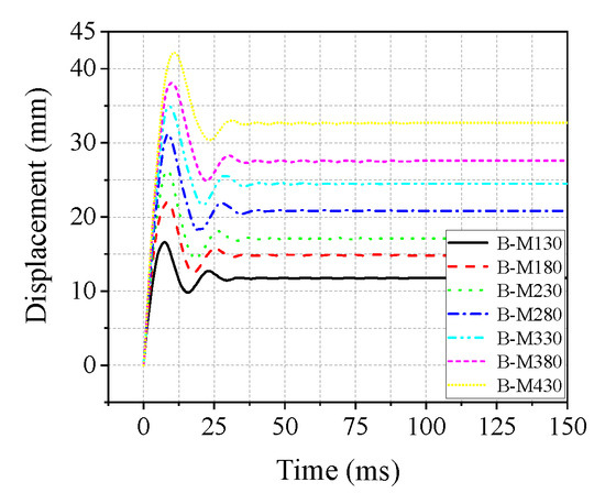 Midspan displacement–time history curves under different lengths of the bonded steel plates.