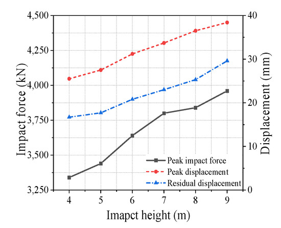 | ID | Impact Height (m) | Peak Impact Force (kN) | Peak Midspan Displacement (mm) | Residual Value of Midspan Displacement (mm) |