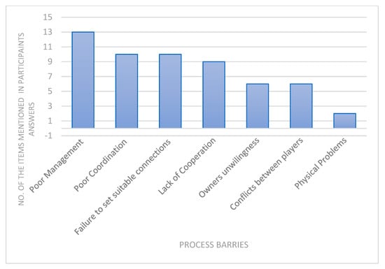 Participants (3, and 11), and P8 identified that poor management and specifications were the biggest problems that occurred during the design process, in addition to the lack of coordination between departments. Participant (12) stated that the problems related to conflicts were the reason for work disruption, especially during the construction phase. Furthermore, the failure to organize the delivery of files between the different sections of the project. Participant (13) also mentioned that the challenges during the design process were poor management and poor requirements, as well as a lack of cooperation between departments. Participant (4) faced clashes and mentioned the importance of enrolling mechanical and structural engineers early in the design process. As shown in Figure 13, the highest frequency of reference codes is “poor management”.
