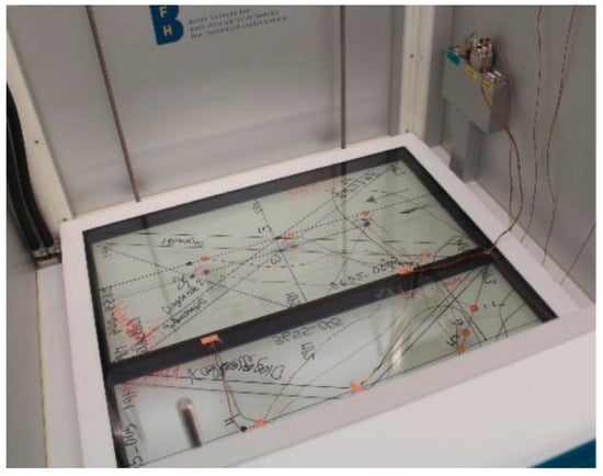Schematic of the two glued samples of triple-glazed units of 400 mm × 800 mm and the temperature sensors. The door can only be opened in a horizontal position. Reproduced from Ghazi Wakili et al. [57].