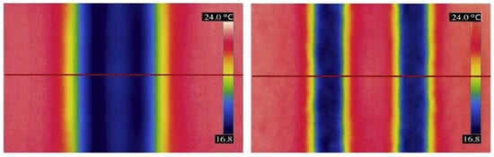 In the infrared thermography (IRT) method, the infrared radiation emitted by the objects is captured and converted to electrical signals, which enable the images to be generated with the distribution of the surface temperatures of the objects and with the help of the Stefan–Boltzmann law. IRT could be divided into two categories, namely, qualitative and quantitative IRT [30]. In the qualitative IRT, the main focus was usually on identifying surface imperfections in building elements, moisture issues, air leakage, and thermal bridge locations. IRT can also be used as a supplementary tool to help find locations without any defects or non-homogeneities for attaching the heat flow meters [50,86,87,88]. The quantitative IRT can be used as a non-invasive method of investigating the building elements’ thermal performance, e.g., the Ψ-value of junctions, the temperature distribution of elements’ surfaces, and the U-value of the elements [30,88,89].