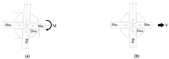 Figure 4 from cracking and to prevent the eccentric loading of the roof, the joints are supposed to provide a certain counter-resistance. Retrofitting these connections contributes to the mitigation of the development of damage caused by such deformation. On the other hand, the force in the plane of the Dieh-Dou frame causes a shear reaction V and the displacement of the Zuo-Dou joint, as illustrated in