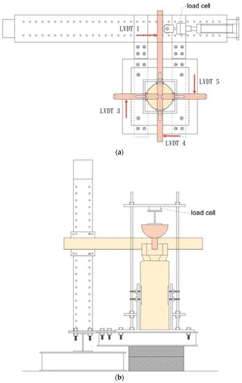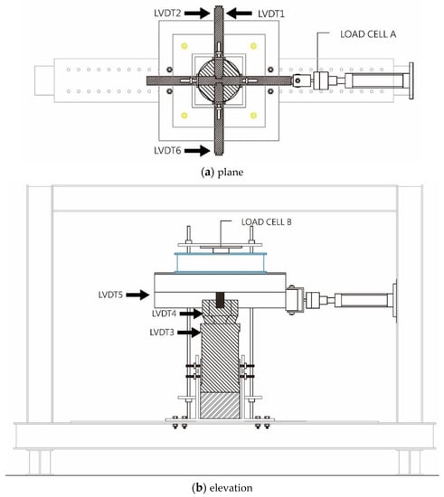 21]. The impact is mainly caused by the in-plane force within the frame of the Dieh-Dou timber structure and is concentrated on the joint on the top of the column. The force is recorded by the load cell on the jack. A couple of LVDTs are allocated around the elements in order to measure the displacement of several nodal points. LVDT 3 and 4 are intended to detect the horizontal deformation of the column and the Zuo-Dou, respectively, evaluating the relative displacement of these components. This displacement is the main response of shear force. Other LVDTs are used to track the deformation of the Hang-In, particularly its position and curvature. The testing rig is depicted in