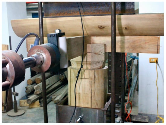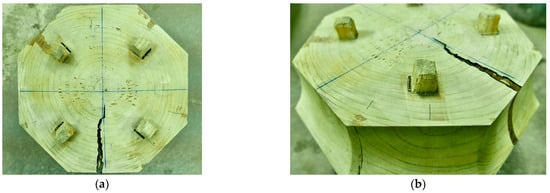 Figure 16 displays the failure of the Zuo-Dou connections retrofitted by the STS. The compressive failure of the Zuo-Dou is caused by the STS. The damage to the wood’s surface shown in