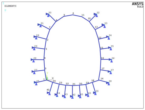 A basic model diagram of tunnel nodes is shown in Figure 23, with 1–24 internal nodes and 24–45 external nodes.