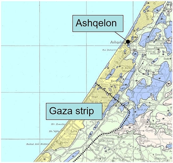 - El-Khoudary, R.H.; Anan, H.S. Preliminary study on the geology and geomorphology of Wadi Gaza, Gaza Strip. In Proceedings of the 2nd Jordanian Geological Conference, Amman, Jordan, 22–24 April 1985; pp. 531–539. [Google Scholar]