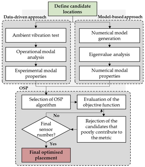 - Papadimitriou, C. Optimal sensor placement methodology for parametric identification of structural systems. J. Sound Vib. 2004, 278, 923–947. [Google Scholar] [CrossRef]