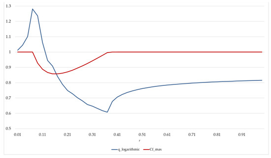 Figure 3 shows the function of Cf_max by varying the rate r in the range selected [0.09–0.37]. The parabolic trend of Cf_max is observed in the range [0.09–0.37]: up to the r = 0.09 the Cf_max are constant, as in the following r interval [0.38–0.99].