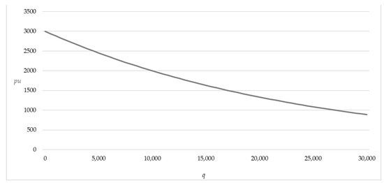In the proposed model, the variability of the unit selling prices is expressed by the logarithmic function of the unit price in Equation (3):