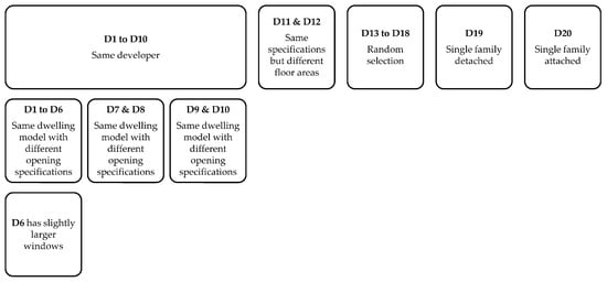 - Two dwellings (D11 and D12) were constructed by the same contractor and featured the same specifications, including the same windows but with slightly different floor areas.