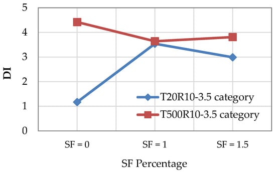 DIs of CFSTs using different percentages of SFs.