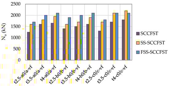 Comparison of ultimate loads of SCCFSTs, SS-SCCFSTs, and FSS-SCCFSTs.