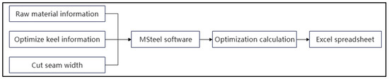 Forward-cutting optimization selects wire blanking optimization software based on AutoCAD-MSteel, which can output engineering optimization blanking information according to input blanking and raw material information, such as specifications, raw material length and cutting seam width. This method can calculate complex optimization results in a short time. The specific calculation process is shown in Figure 4, and its main steps are as follows: