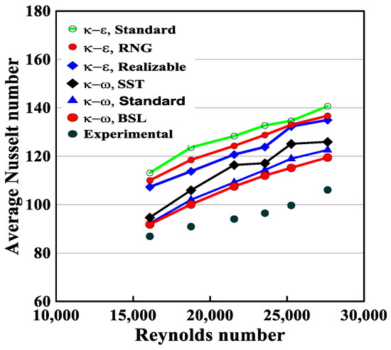 The k-ω BSL turbulent model is considered in the current study as illustrated in Figure 4. The numerical results of Setting 3 have been validated by published experimental work by Refaey et al. [9]. Because of its accuracy and reliability, ANSYS-FLUENT CFD software (version 17.2) is employed as a simulation tool in these intricate geometric models. As a result, the modelling of the properties of the flow field in actual brick contexts was incorporated into the current study. A thorough description of the current physical model was given by Refaey et al. [14]. Using a computer and actual brick attributes in the CFD code yields great results that mirror real-world conditions.